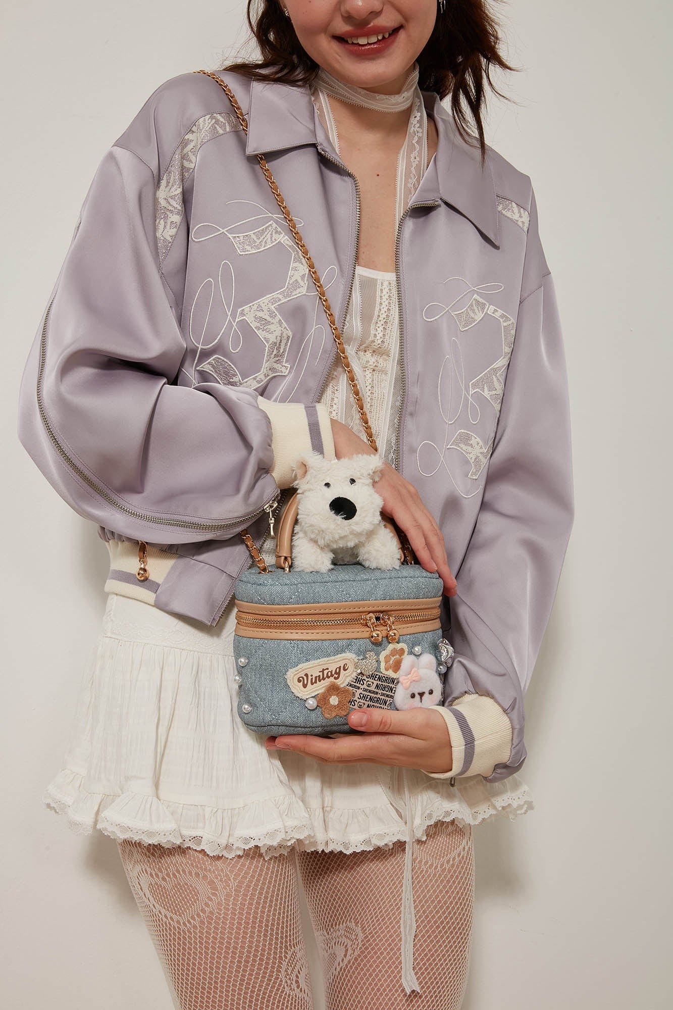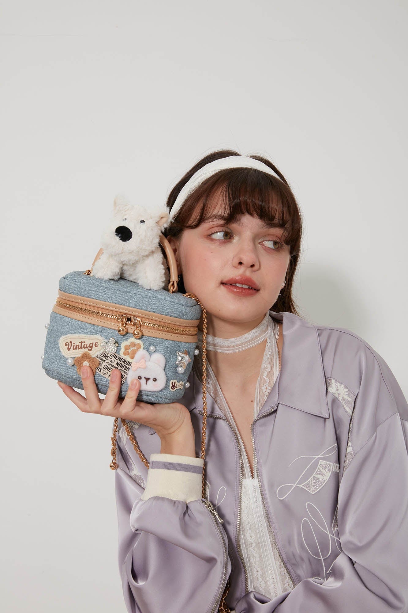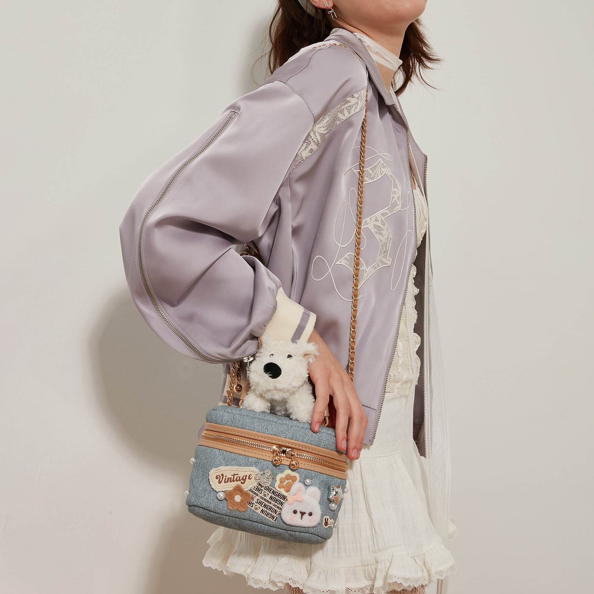 - Verziert mit verschiedenen 3D-Applikationen, Kunstperlen und aufgenähten Flicken