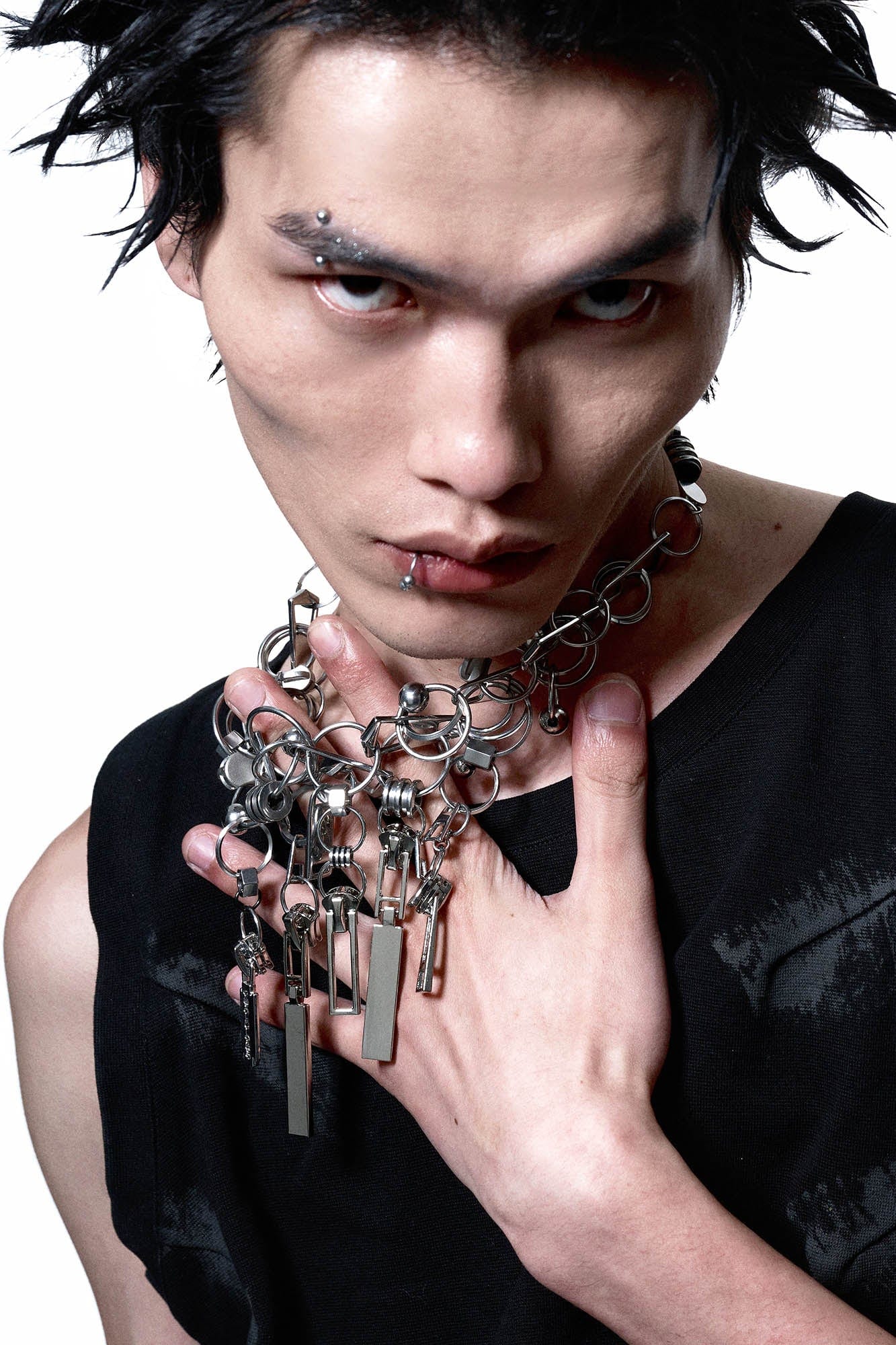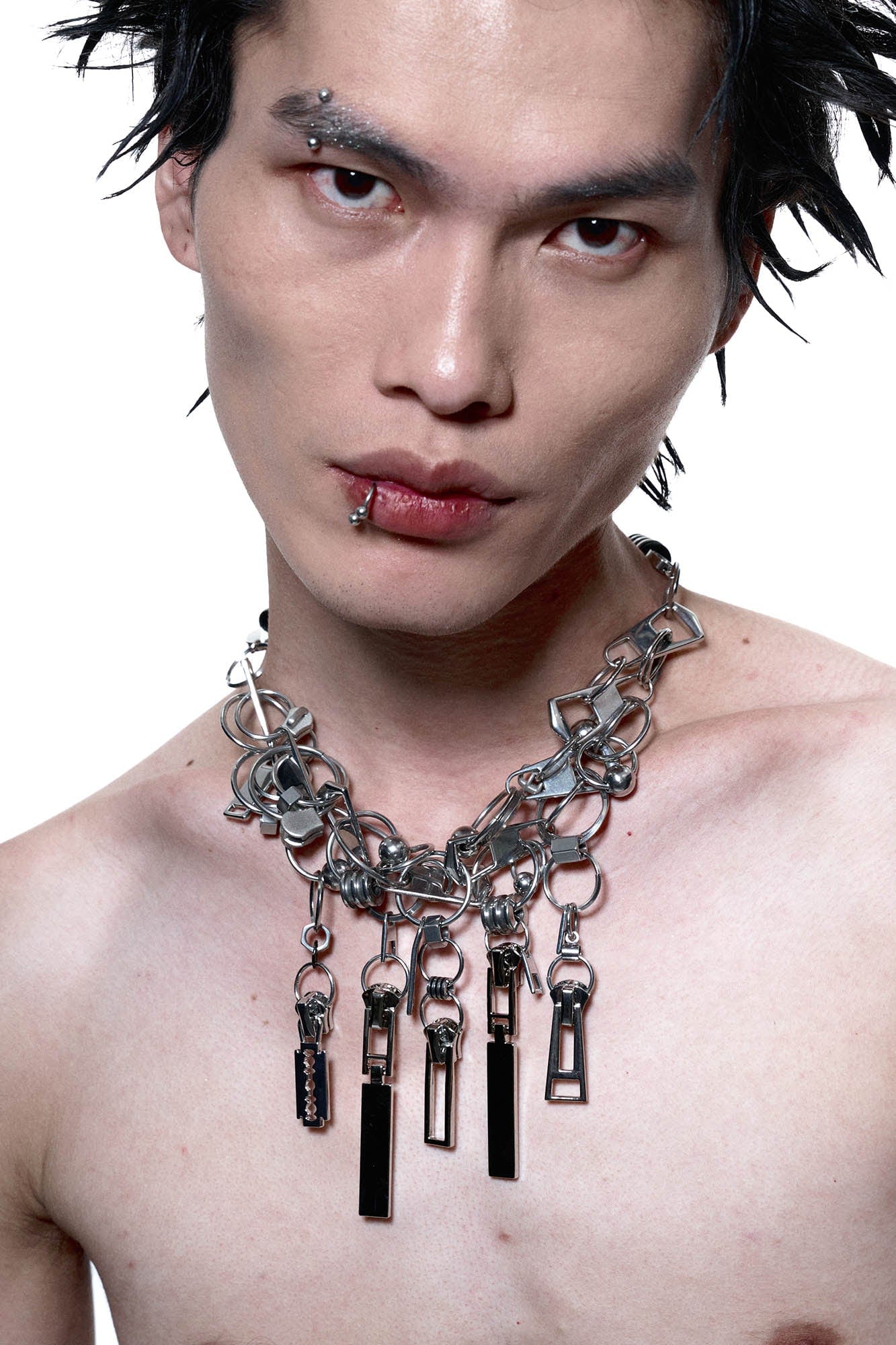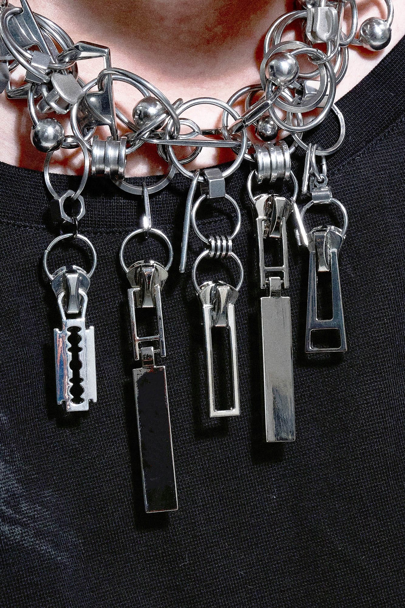 - Diverse charms including razor blades and zipper pulls