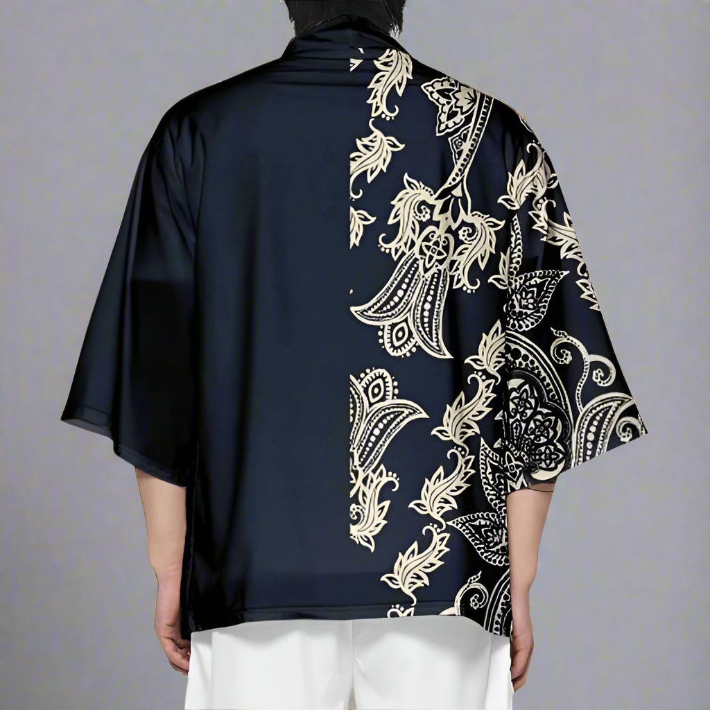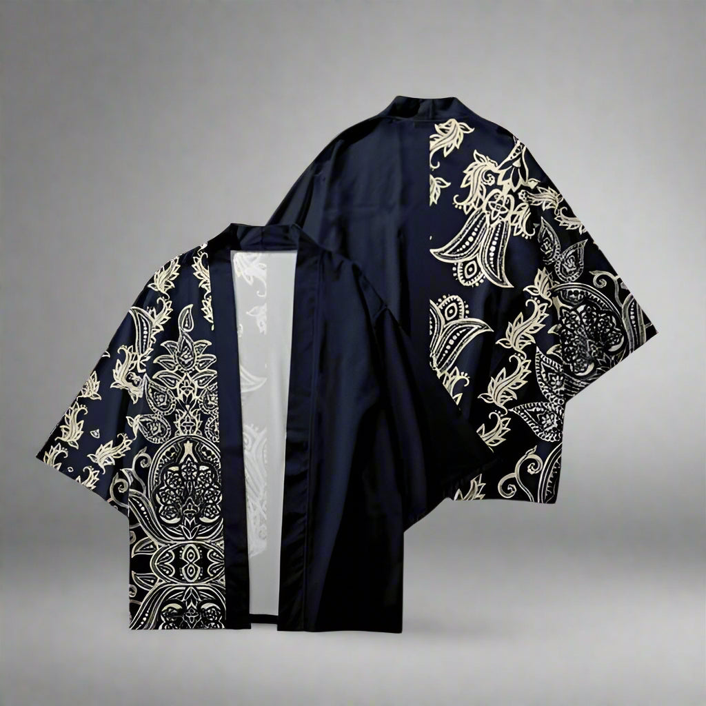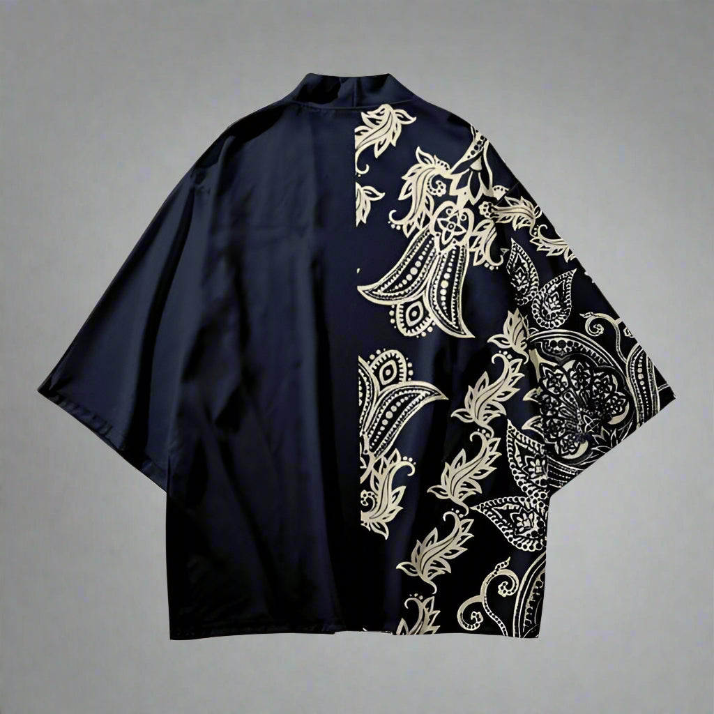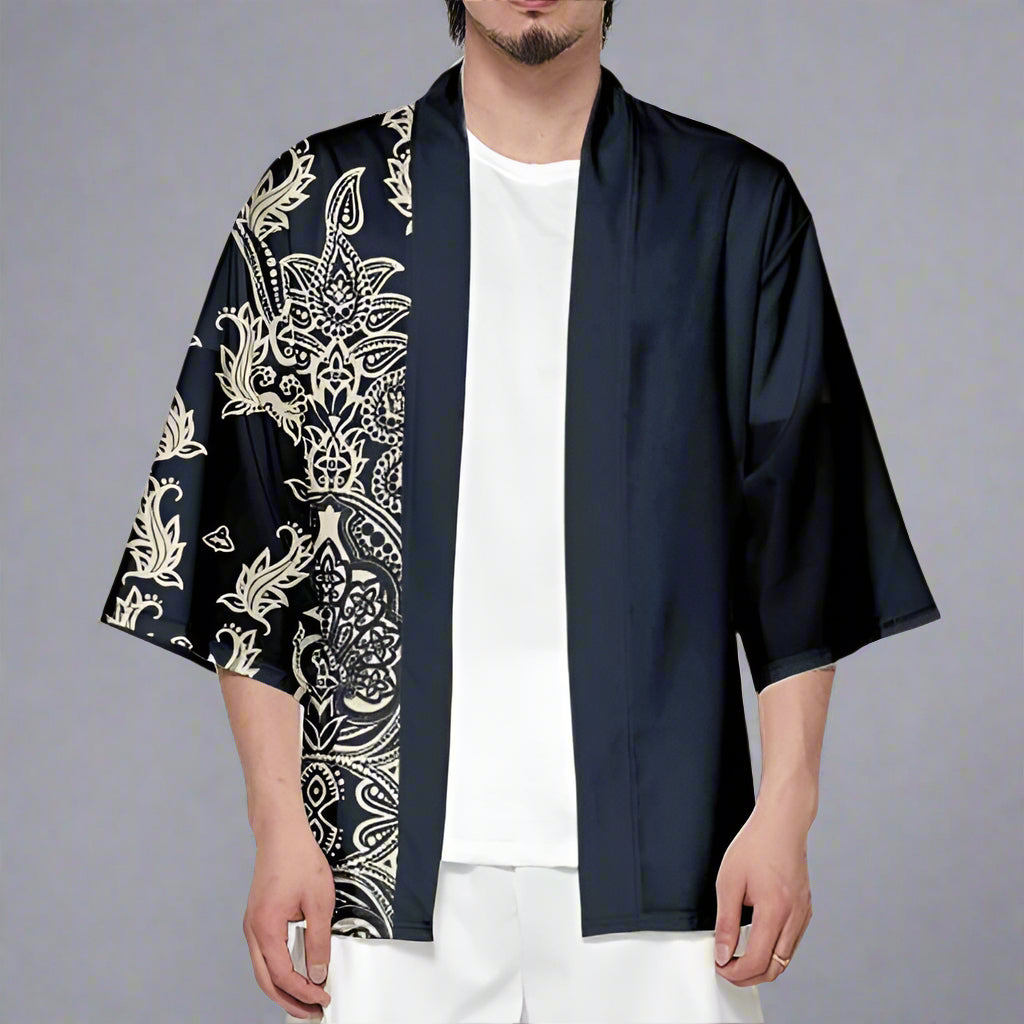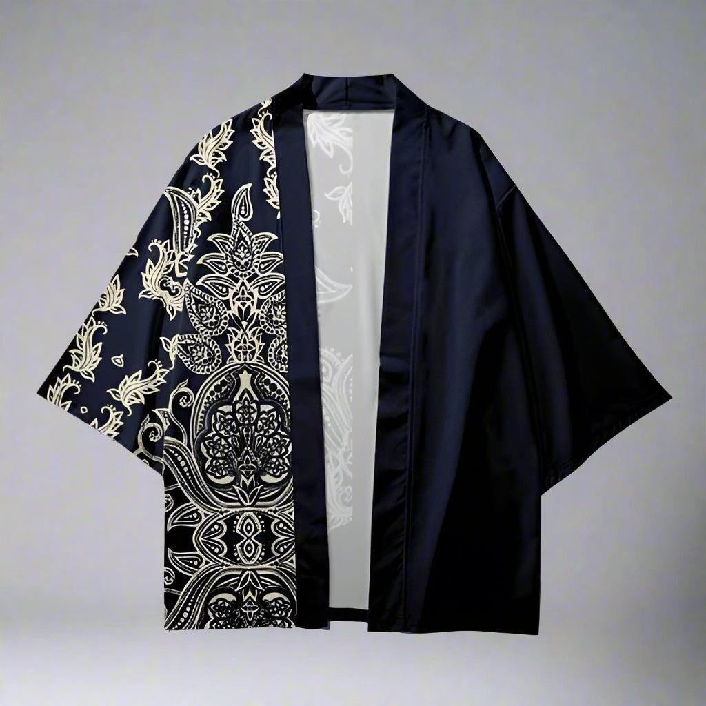 - Stylish Haori; a kimono cardigan with a luxurious paisley design