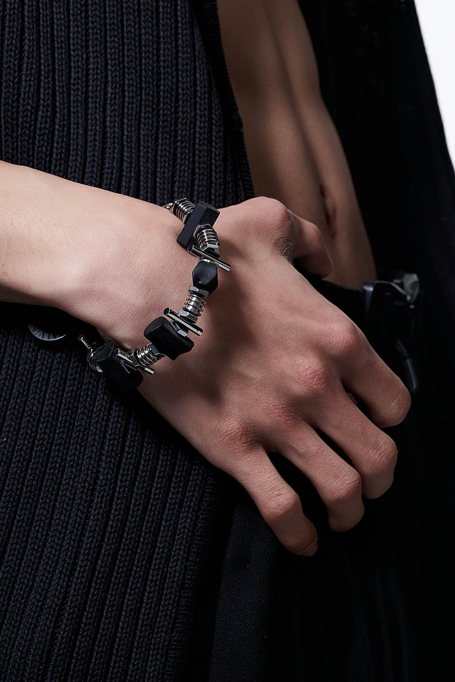 - Rugged black tourmaline stones paired with shiny silver metal components